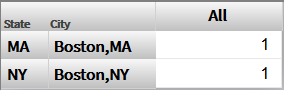 (アメリカには)Boston と言う都市がある州がたくさんあります。 私のサンプルデータでは、Boston, MA(マサチューセッツ州ボストン)と Boston, NY(ニューヨーク州ボストン)のレコードがあります。 次元は次のように定義されています。