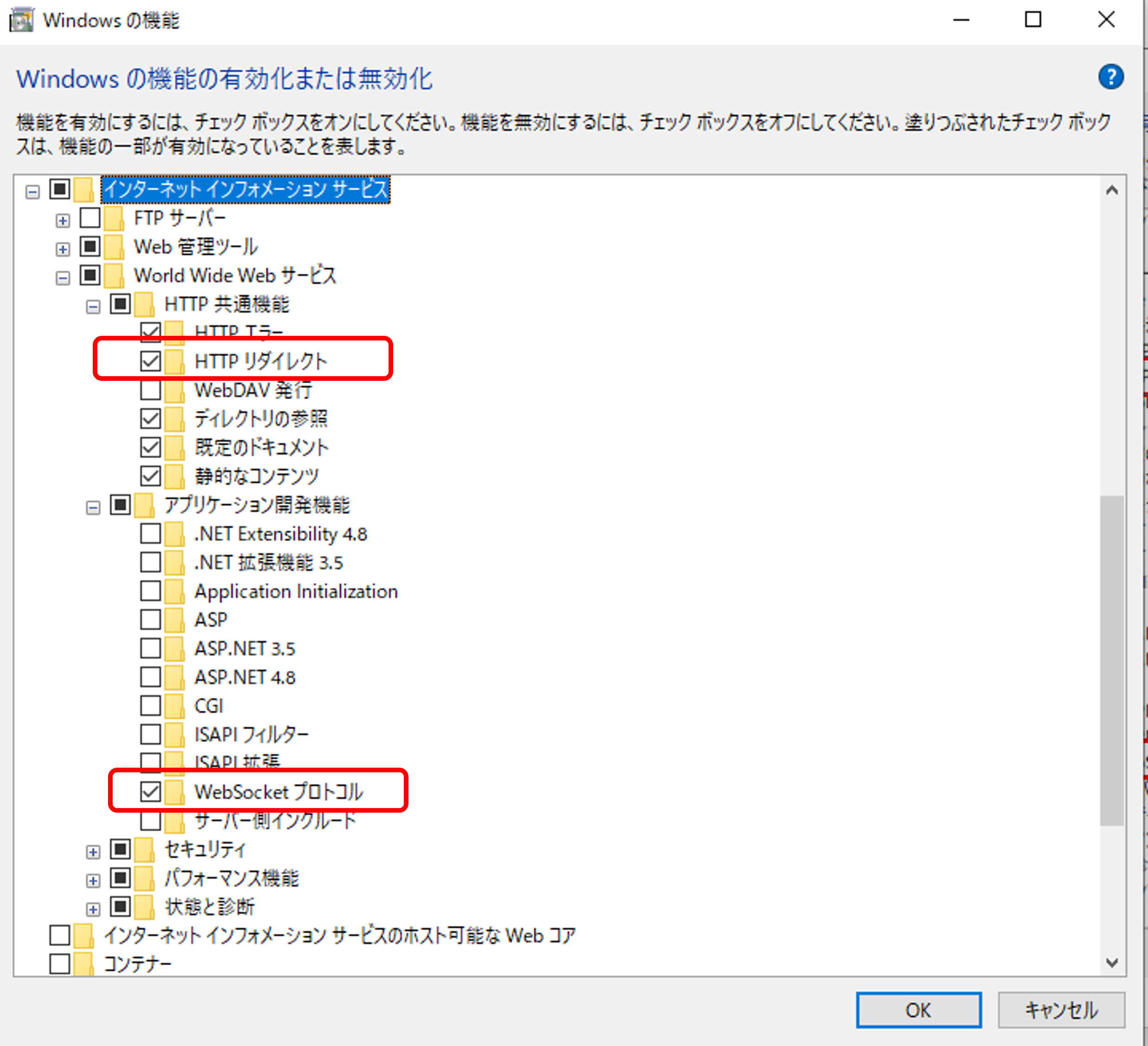 IISを有効化した後で、InterSystems製品のインストーラーのメニューから「ウェブサーバ」(下図左)または「カスタム」から「Webサーバゲートウェイ→IIS用CSP」(下図右)で設定を行った場合、