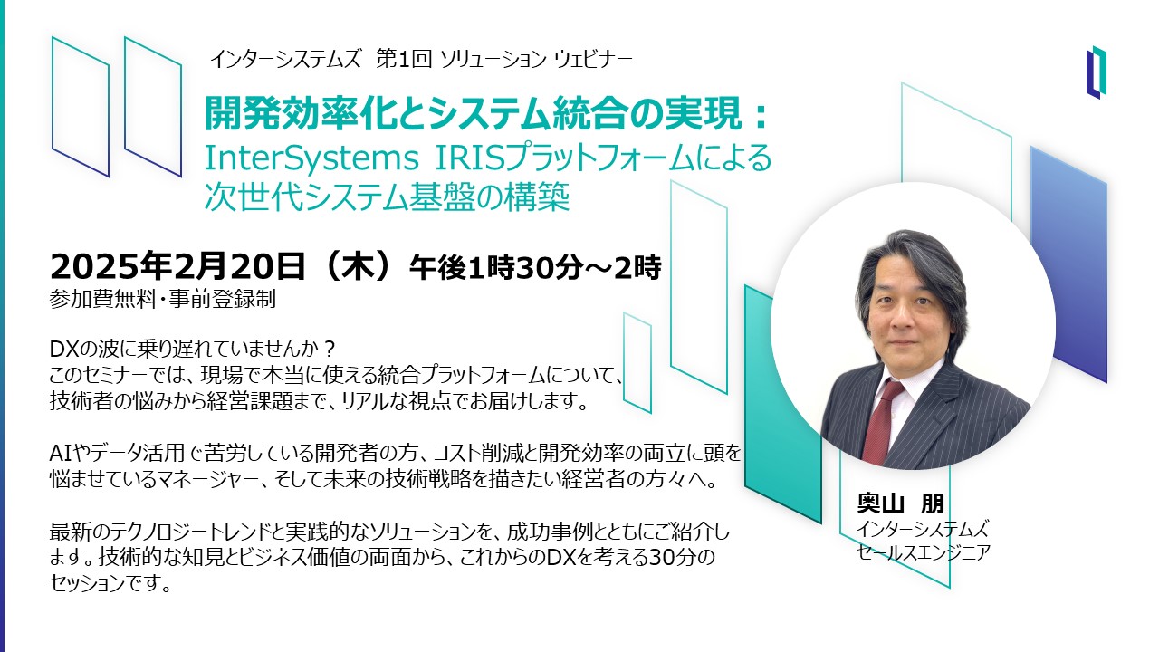 さて2025年最初のウェビナーは「開発効率化とシステム統合の実現:InterSystems IRISプラットフォームによる