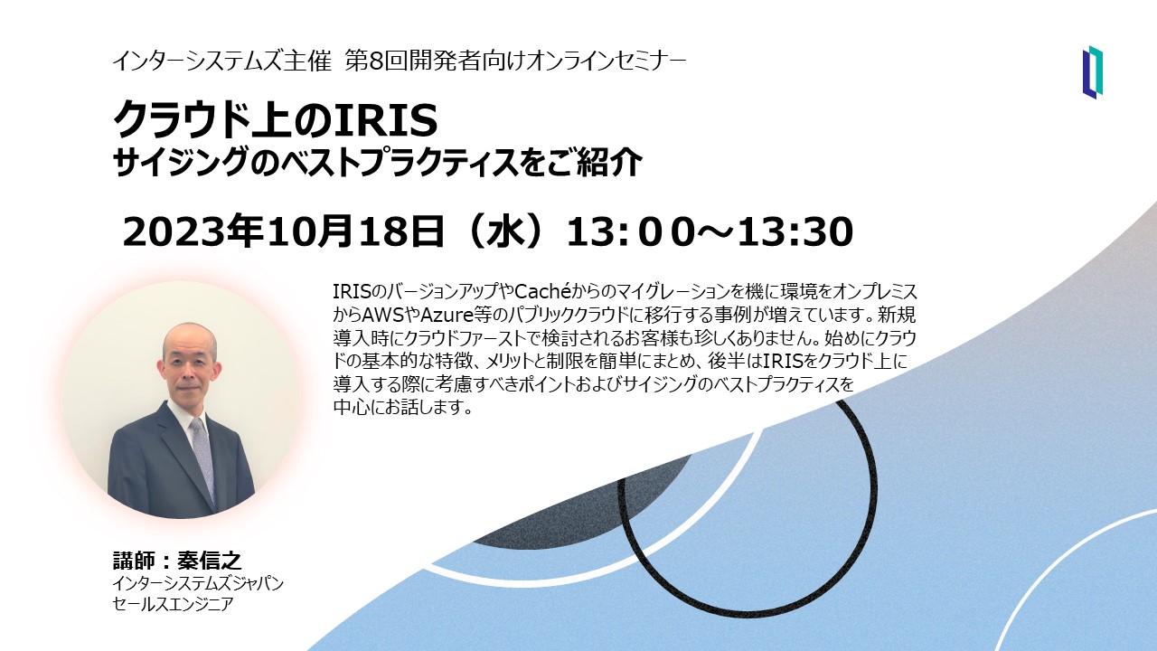 タイトル:「クラウド上のIRIS - サイジングのベストプラクティスをご紹介」(事前登録制・参加費無料)
