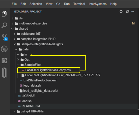 LocalRedLightViolation1-copy.csv を Ctrl + c でコピーし、shared/Samples-Integration-RedLights/data/In に Ctrl +v でペーストします。