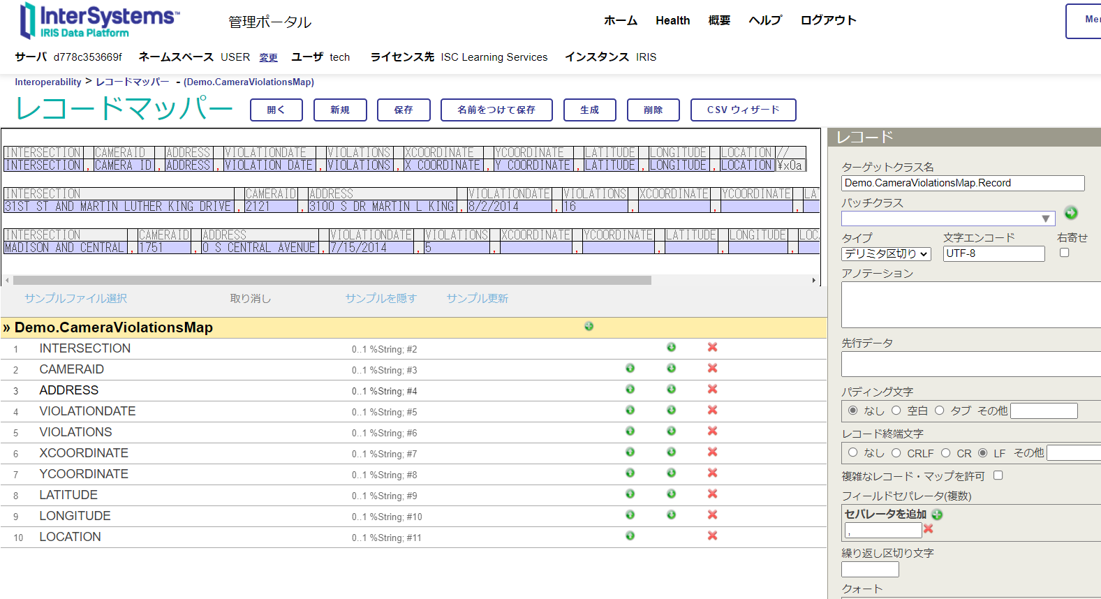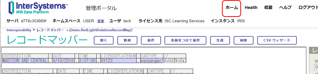 管理ポータルの「レコード・マップ」は、CSV などの区切りマークで区切られたデータが含まれるファイルに対する入出力処理用コードの自動生成とプロダクションで使用するメッセージ定義を簡単に生成させることができる機能です。