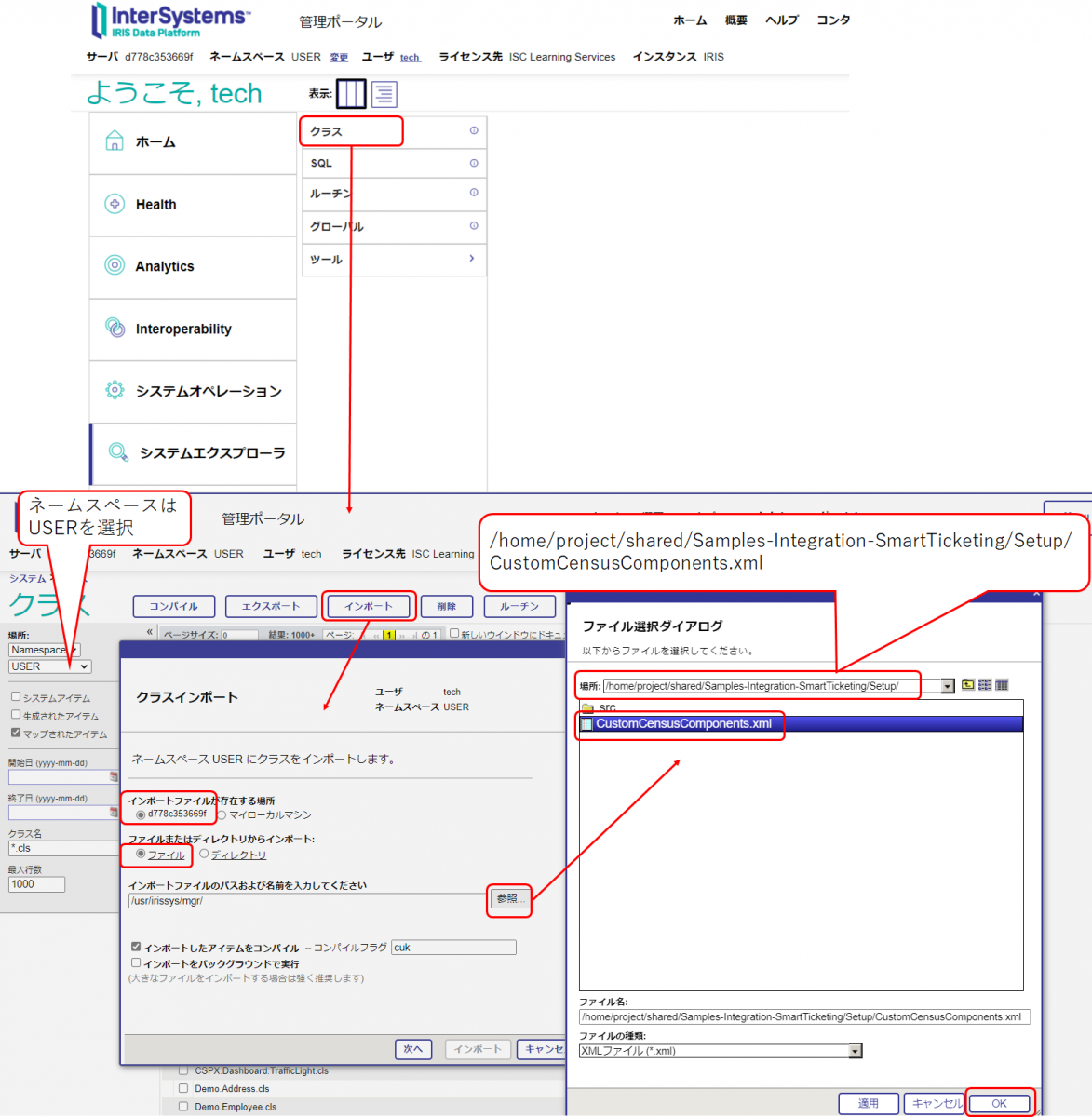 左画面で、shared/Samples-Integration-SmartTicketing/Setup/src/cls に移動し、Demo.ToCensusDS クラスを開きます。