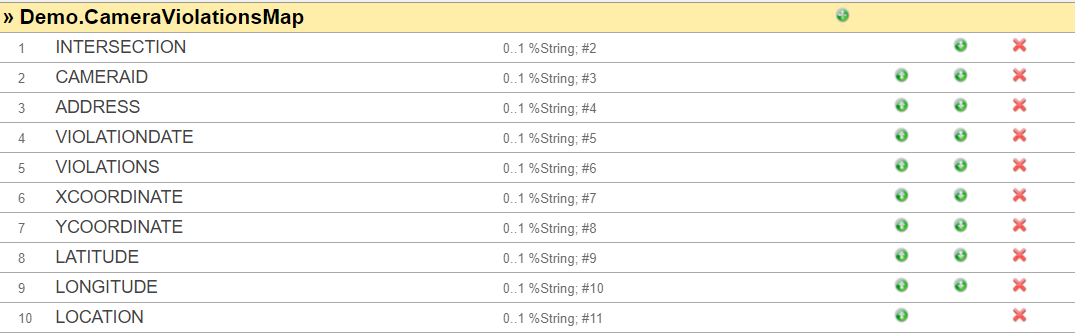 (11) ハイリスクの交差点の情報を出力するファイルに人口密度情報を追加するため、レコードマップ:Demo.HighRiskArchiveMap を修正します。