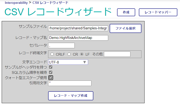 この他、CSV ウィザードもあり、CSV のヘッダを読み込み、対応するレコードマップを自動的に作成するメニューも用意されています。