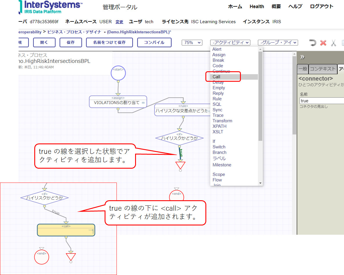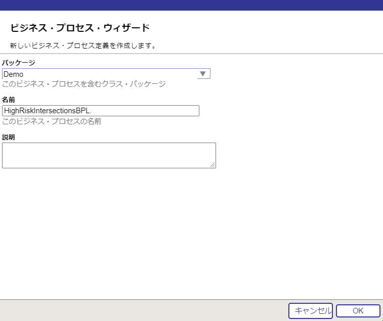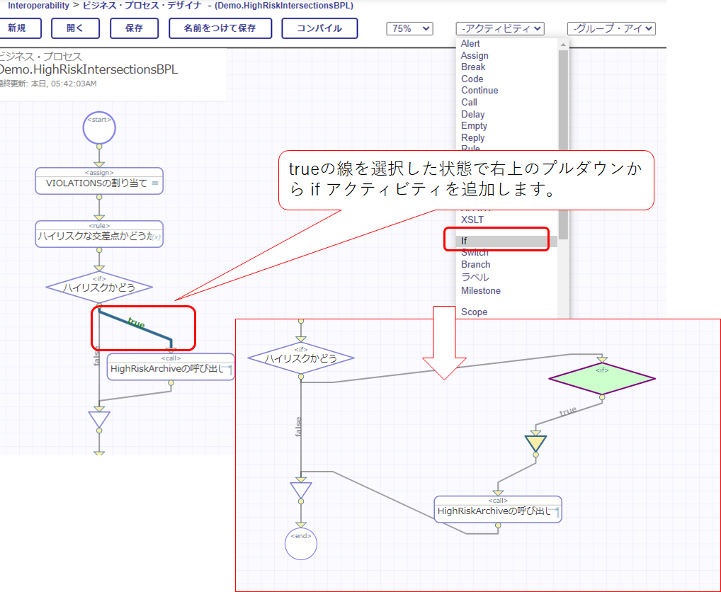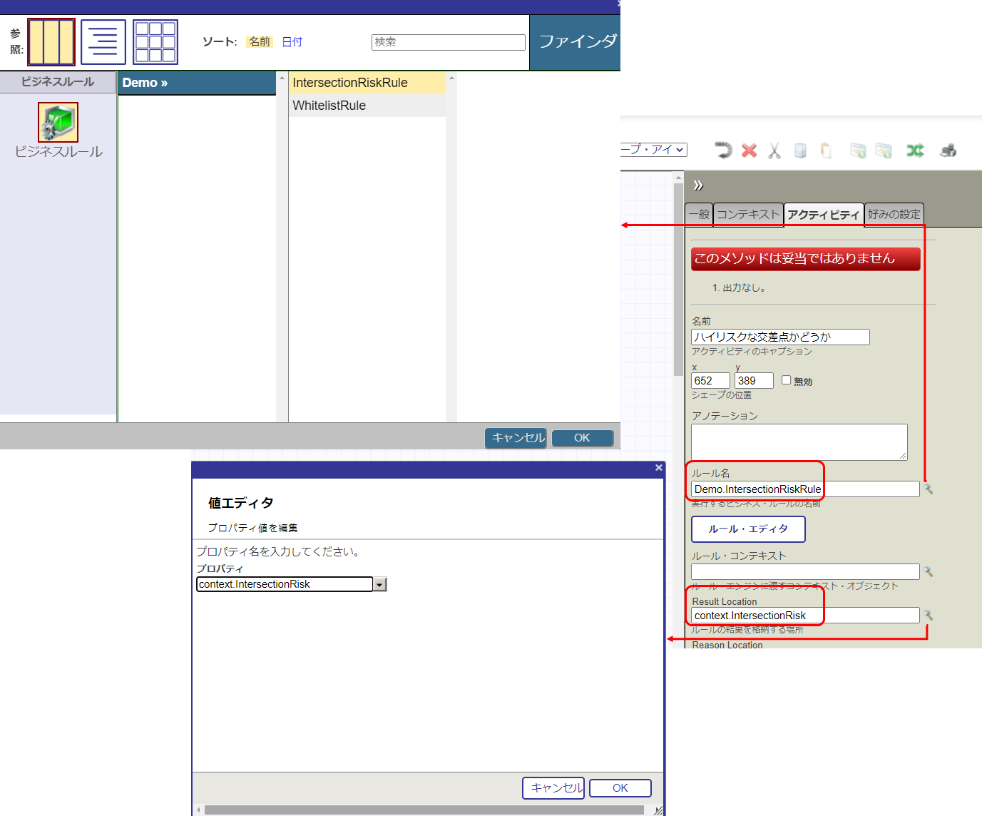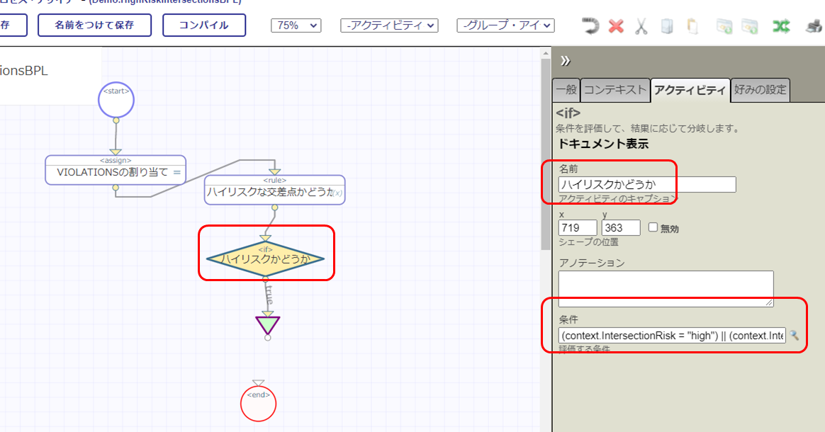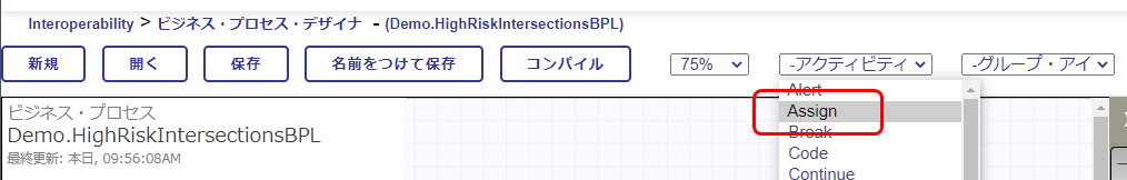 (12) ビジネス・プロセス:Demo.HighRiskIntersectionsBPL のエディタに戻ります。