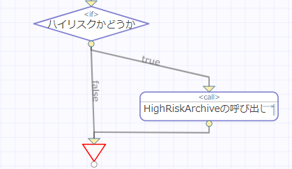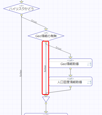 Geo情報有無 の <if> アクティビティで false の場合は何も処理せず、ブロックの終わりに移動するように線を引きます。