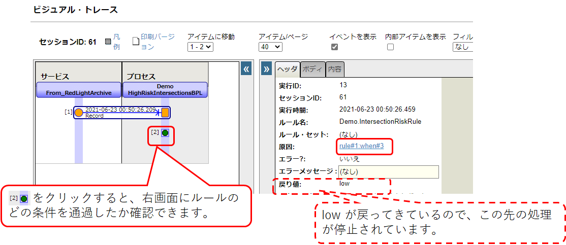 ここでは、処理されたファイルの情報をメッセージのビジュアルトレース画面を使用して確認してみます。