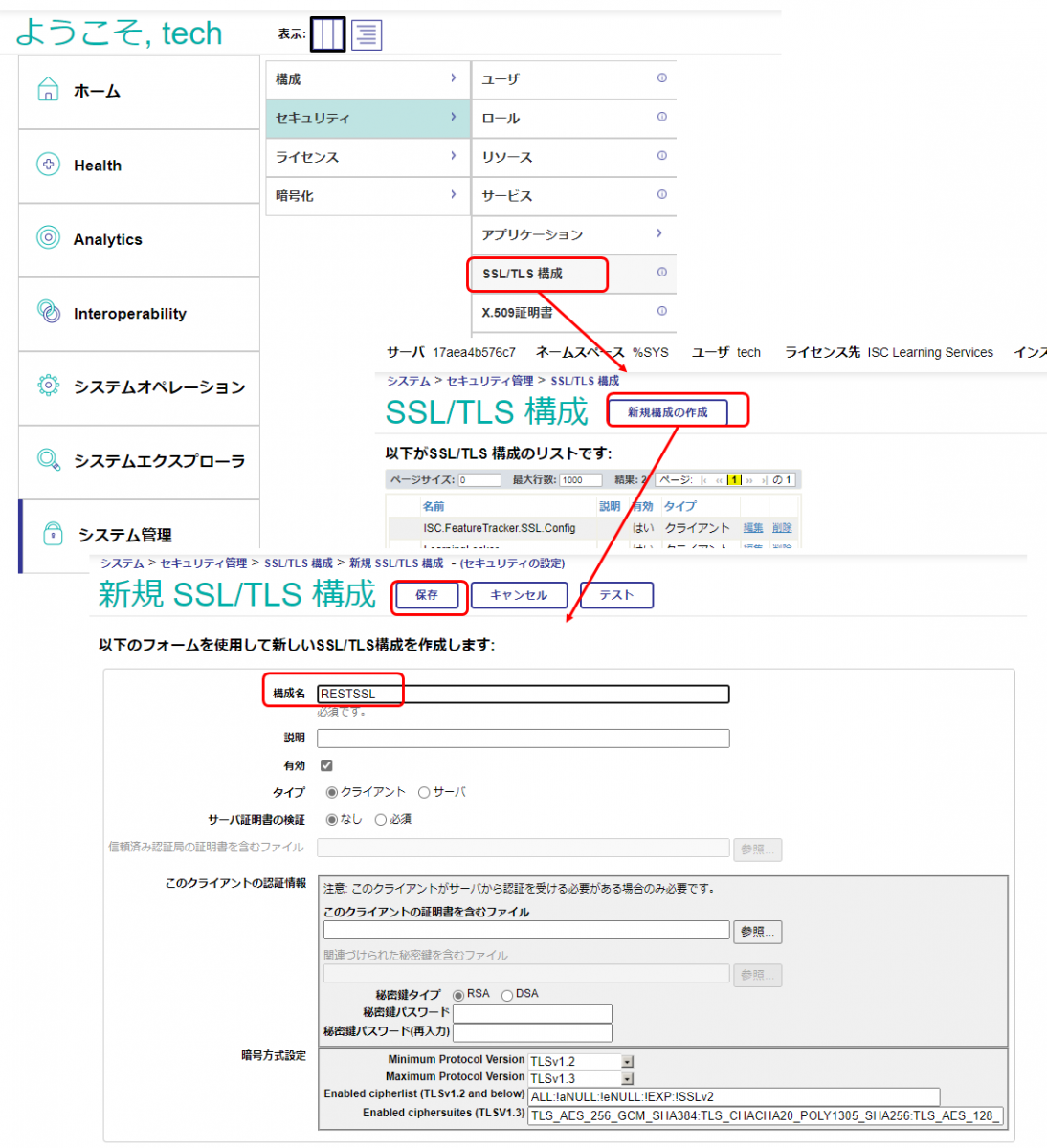管理ポータル起動時、ログイン画面が表示されたら、ユーザ名: tech パスワード:demo を入力してください。
