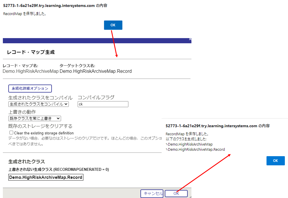 管理ポータルの ホーム > Interoperability > 構築 > レコード・マップ > 開く > Demo.HighRiskArchiveMap で定義を開きます。