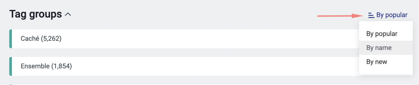 このソートを選択すると最も最近に作成されたタグやグループを一番最初に表示します。
