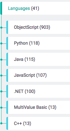 例えば「言語」タグには「C++」「Python」「JavaScript」「MultiValue Basic」「ObjectScript」「Java」「.NET」といったサブタグがあります。