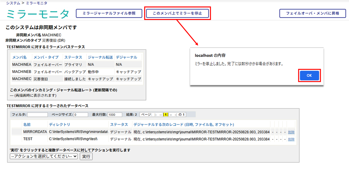 ※ ミラーが使用できなくなるのは、計画的フェイルオーバーの実行時間のみです。