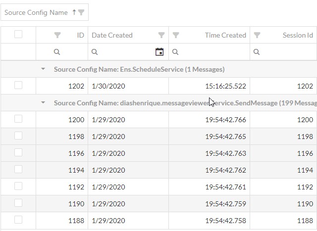 また、列を選択できる機能があります。 次のページには、Ens.MessageHeaderのすべての列があります。デフォルトの列のみが初期ビューに表示されていますが、 「Column Chooser」(列選択)ボタンを使って、ほかの列を選択することができます。