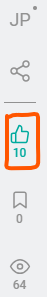 各記事を参照している状態で「いいね」をクリックする場合は、画面左側にアイコン一覧が縦に並んでいますのでのマークをクリックします。