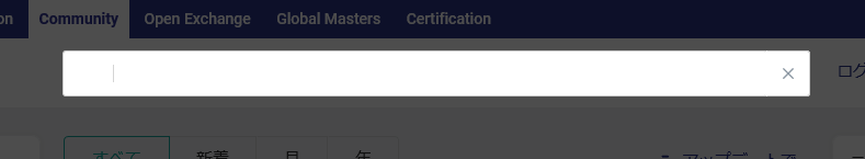 開発コミュニティのページで検索される場合は以下の赤枠の虫眼鏡マークをクリックします。