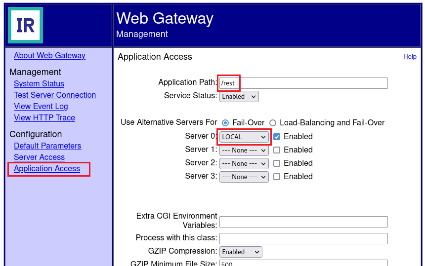 この構成により、Webゲートウェイは /rest アプリケーションをIRISサーバに転送します。
