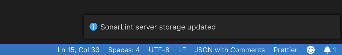 設定を保存し、SonarQube 側に変更を保存したら、バインディングを更新して VSCode を最新状態にします。