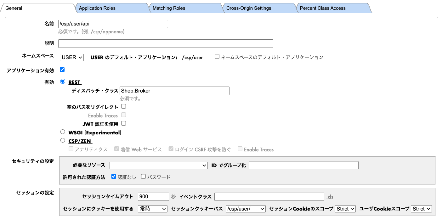 }RESTのアプリケーション定義を/csp/user/apiとして