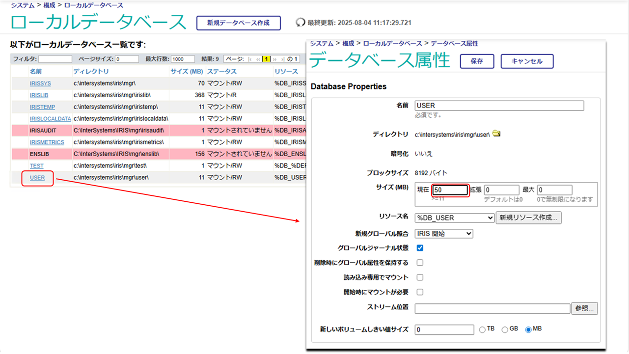 08/04/25-11:27:01:424 (3468) 0 [Database.FullExpansion] Expansion completed for database c:\intersystems\iris\mgr\user\. Expanded by 39 MB.