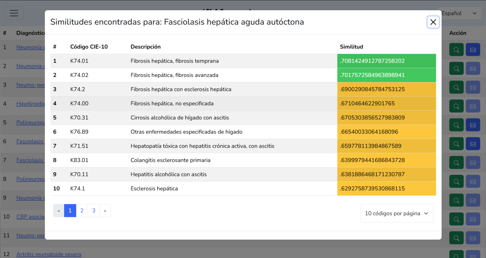 受信した診断がすべてベクトル化されてデータベースに保存されているため、SELECT クエリを実行するだけで、受信した診断に最も近い ICD-10 診断を抽出できます。