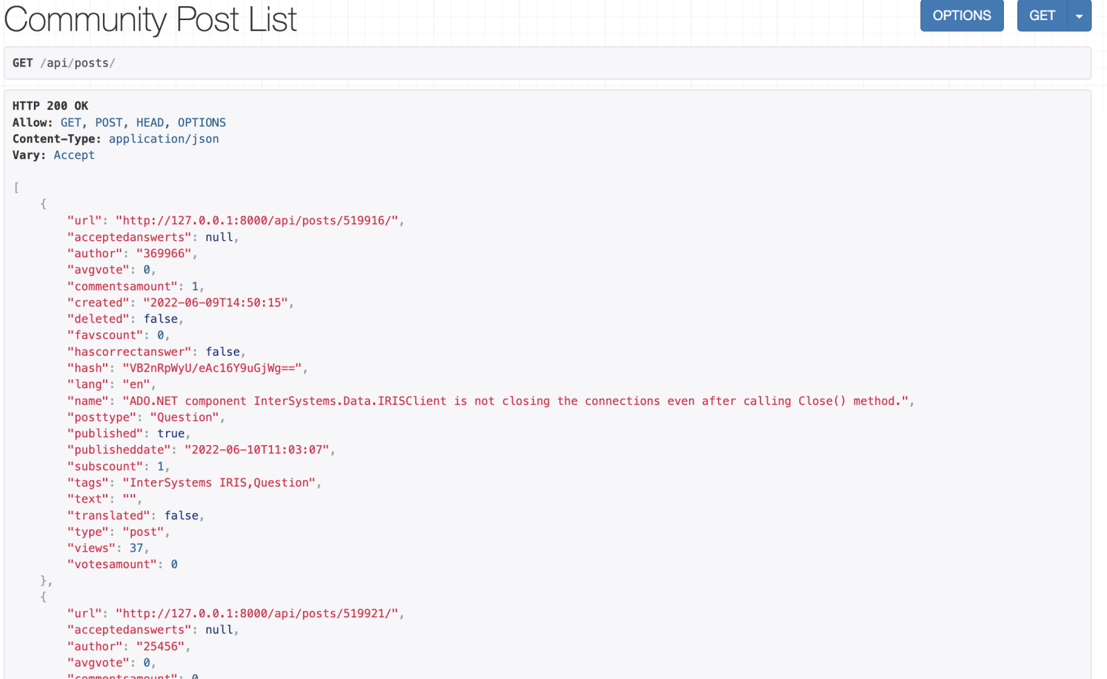 では、実際の動作を確認しましょう。posts-and-tags パッケージで使用したデータで Django に REST API を作成します。