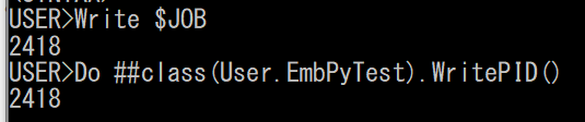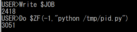 これと同様の処理を$ZF(-1)で実行すると別プロセスになります。