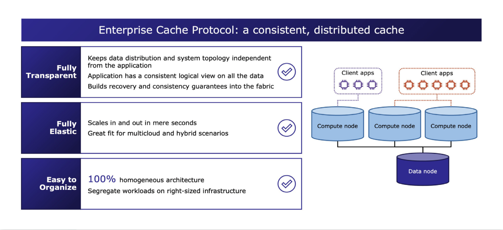 言い換えれば、分散データのパフォーマンスは、大規模であっても高い水準を維持します。これらのECPノードを水平スケーリングのために拡張することで、より高いスループットを管理することができるようになります。また、これらのノードをデータ分散のために拡張することも可能です。これにより、どのノードのメモリに依存することなく、インメモリパフォーマンスを実現することができるようになります。