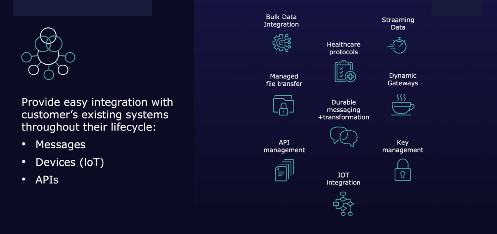 このサブシステムの相互運用性には、組み込みのAPIライフサイクル管理、ストリーミング機能、IoTの統合、クラウドサービスとの互換性などが含まれます。また、複数言語に対応した動的ゲートウェイも提供しており、既存アプリケーションを、お好みの言語でこれらのデータフローに高性能に統合することが可能です。