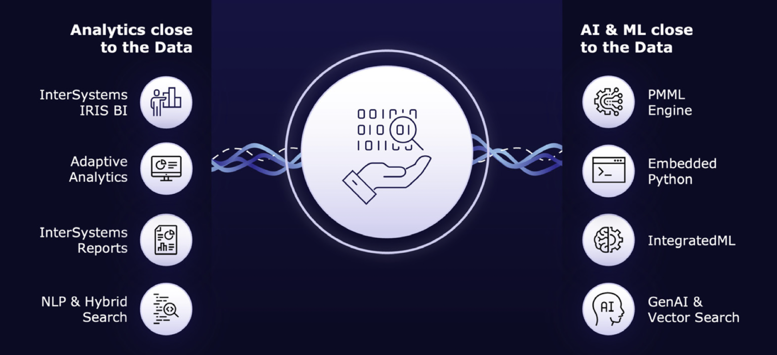 InterSystems IRISの相互運用性は、組み込みの分析およびAI機能のセットと連携します。