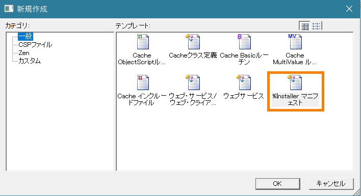 ファイル > 新規作成 > 一般 > %Installer マニフェスト > OK