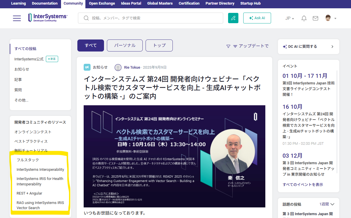 この記事では、Developer Hub にあるチュートリアルに新しいチュートリアル:InterSystems IRIS ベクトル検索を使用した RAG が追加されましたので内容をご紹介します。(準備不要でブラウザがあれば試せるチュートリアルです!)