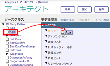 まずはメジャーの設定です。クラス・ビューワにある Age を モデル・ビューワの ▼メジャー の上にドラッグ&ドロップします。