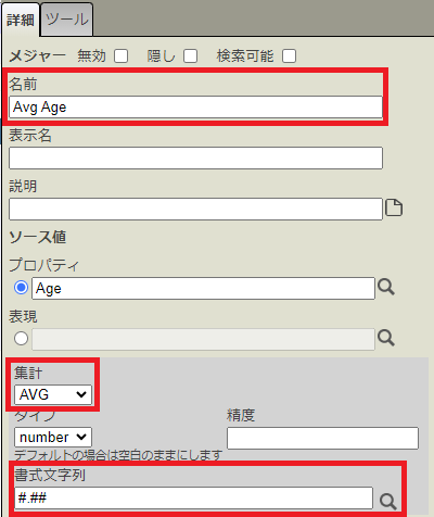 Age1 という名前のメジャーが追加されたら、詳細ペインで以下のように変更します。