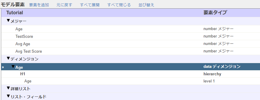 その後は、ディメンジョンの名前を Name → HomeD に、レベルの名前を Name → City に変更します。変更後のモデル・ビューワは以下のようになります。