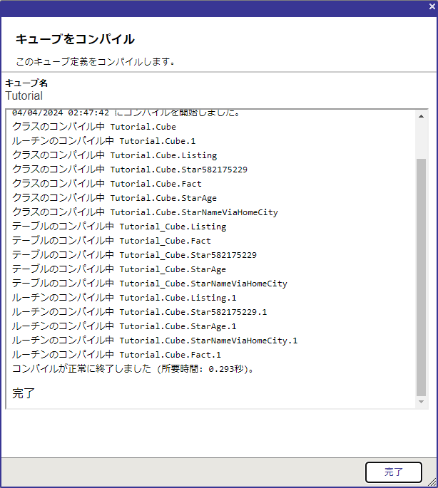 これで、一通りのメジャーとディメンジョンの設定ができました。最後にキューブをコンパイルし、ビルドします。まず、画面上部の [コンパイル] ボタンをクリックしてコンパイルを行います。