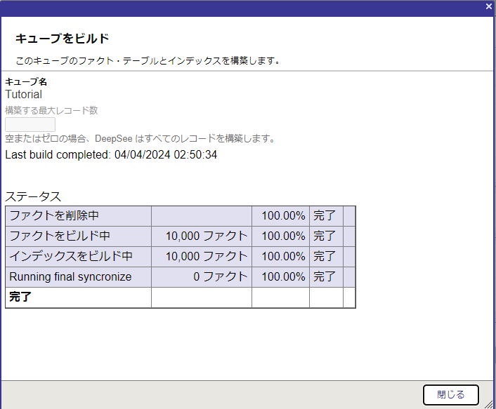 以下のようなダイアログが表示されます。今回は全件を使用しますので、[構築する最大レコード数] はブランクのままで [ビルド] をクリックします。