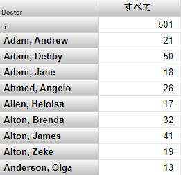 医師ごとのピボットテーブルに代わりました。いちばん上にカンマだけの名前の医師があります。