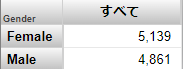 次に Gender の確認をします。[行] をGender に入れ替えます。