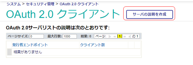 管理ポータル→システム管理→セキュリティ管理→OAuth2.0→サーバ の画面で「クライアントデスクリプション」をクリックすると以下のように登録されていることがわかります。