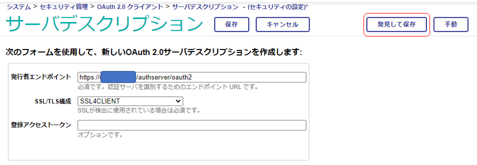 項目を入力したら「発見して保存」を実行して、OAuth2認可サーバから情報を取得します!