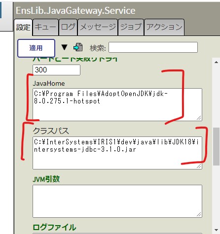 設定を行うため、EnsLib.JavaGateway.Service をクリックします(クラス名の字の部分をクリックします)。