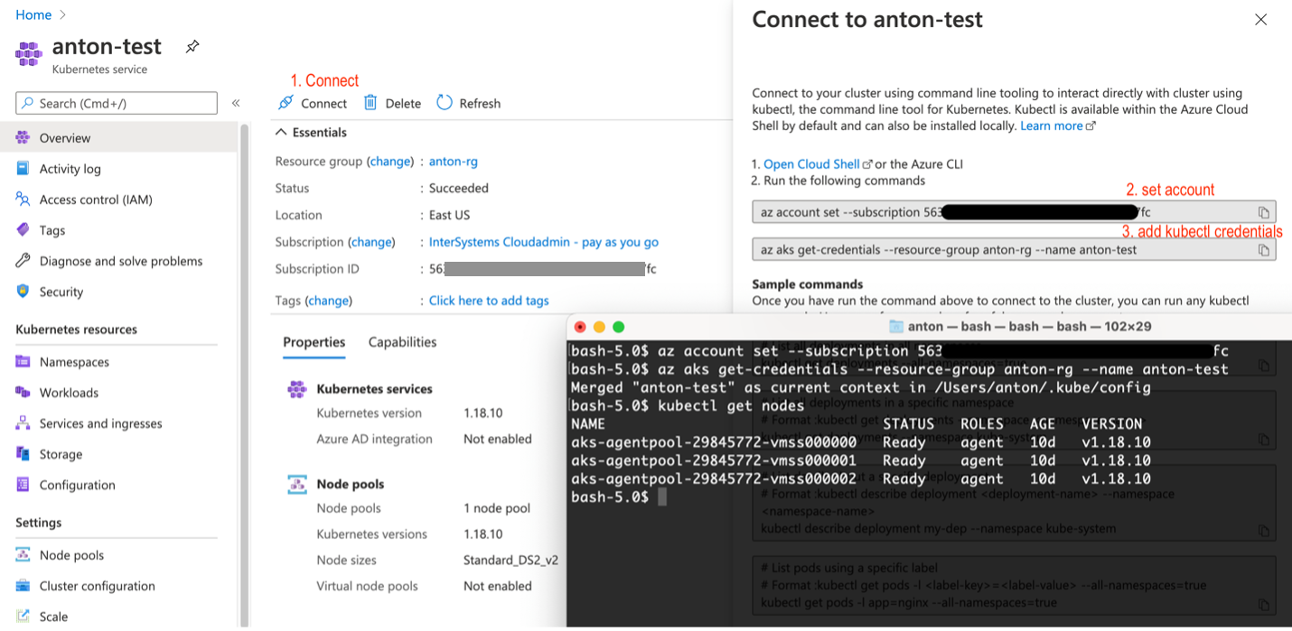 3ノードk8sクラスタが必要です。 Azureでのクラスタの構成方法は付録Aをご覧ください。