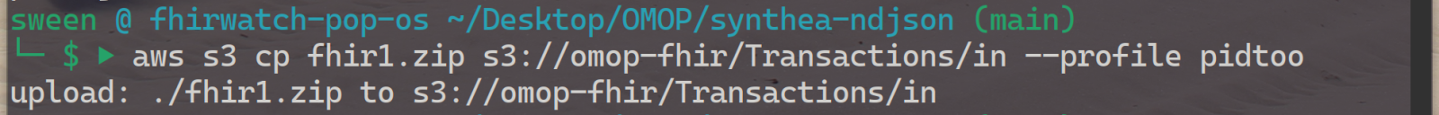 では、実際にやってみましょう。前回セットアップしたバケット `arn:aws:s3:::omop-fhir` を覚えていますか?早速ペイロードをアップロードして OMOP データベースをロードしましょう。