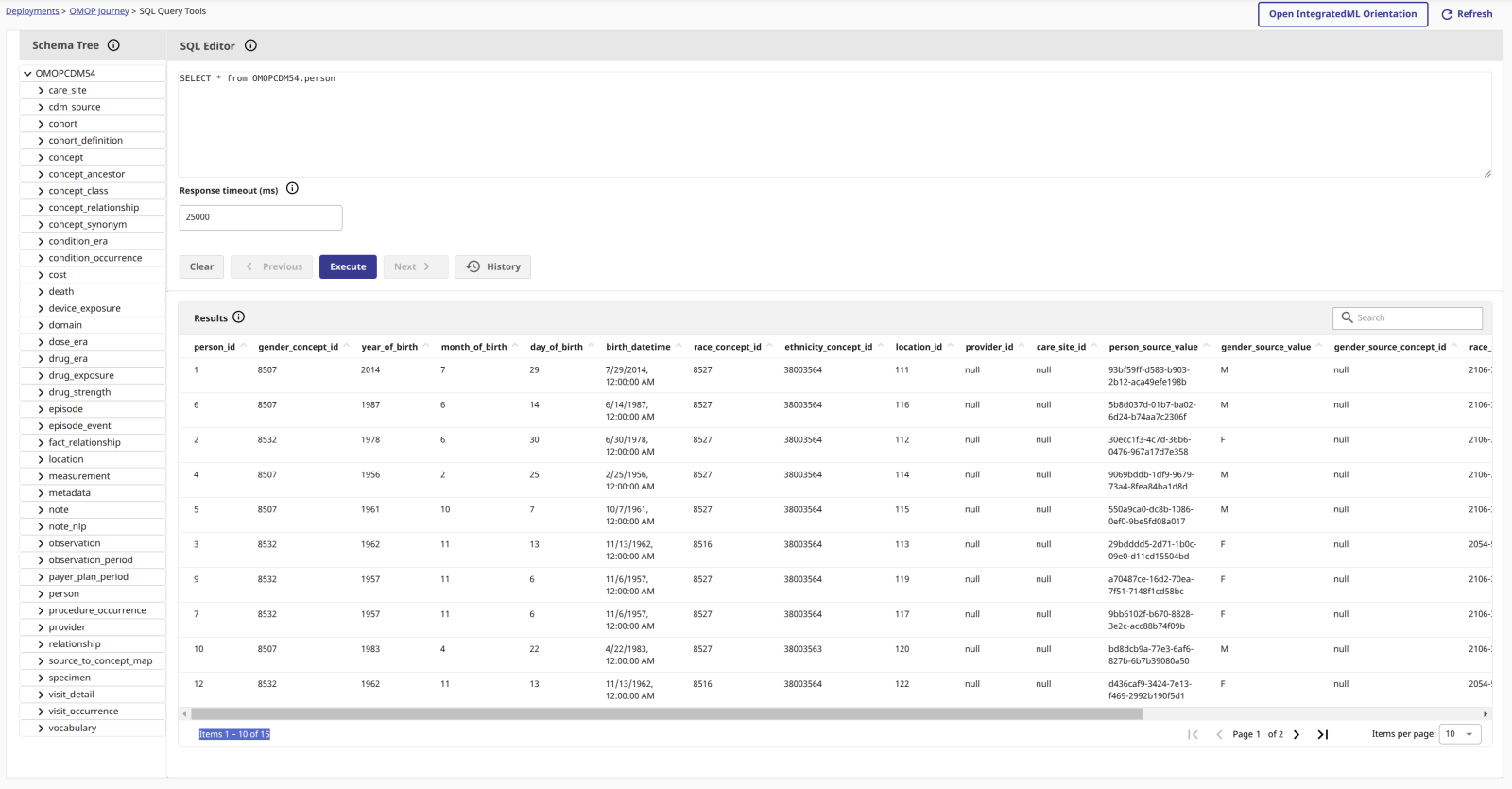 では、指示に従って、OMOP Database に着地する 10 人の患者で構成される小さな母集団を生成し、サービスをハイライトしましょう。