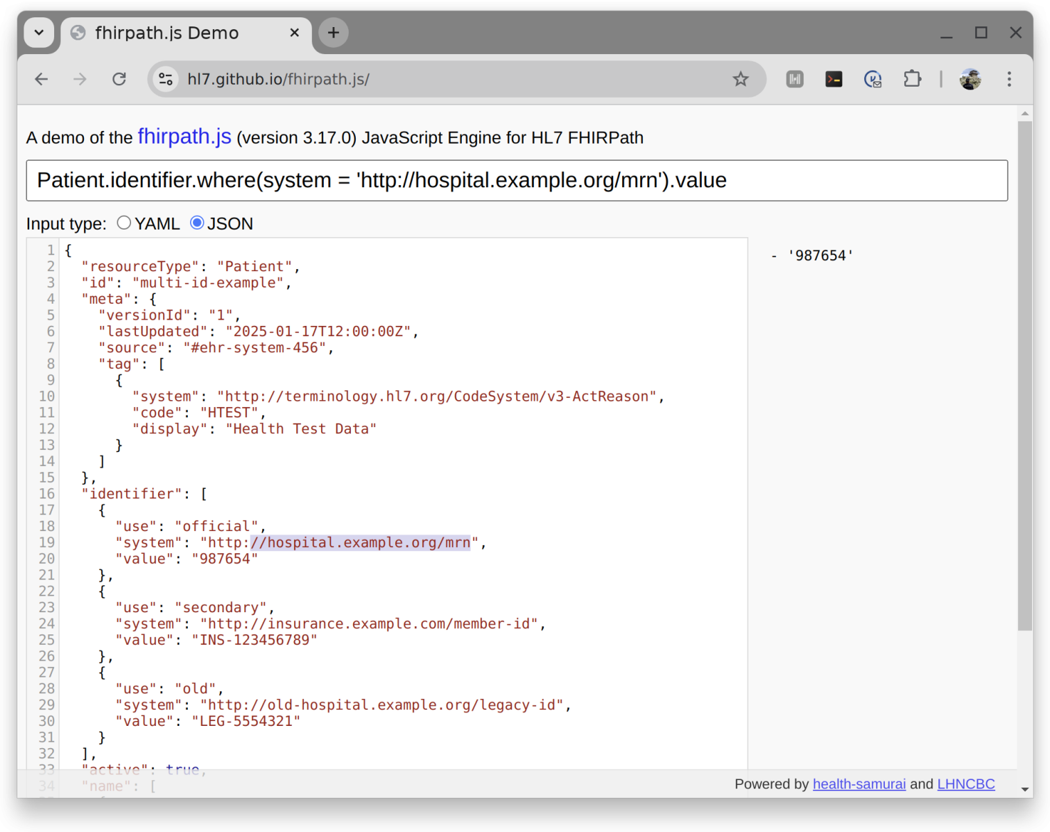 構成タブ(またプロビジョニング前)には、変換の制御に関して確認するオプションがいくつかありました。最初の 2 つのオプションはソースデータのマッピングのオプションで、FHIRPath 式を使用して、マッピングを制御できます。FHIR resource json で FHIRPath をマイニングするには、fhirpath.js demo での学習が役立つと思いました。