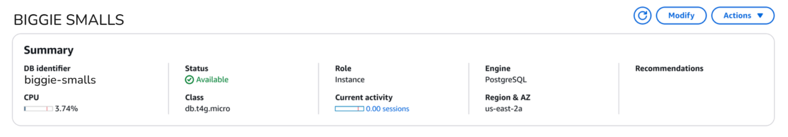 そうは言っても、私はまったく逆のことをしています。Jeff Bezos に可能な限り最小限の金額を渡し、db.t4g.micro postgres RDS インスタンスを使用しています。.png)