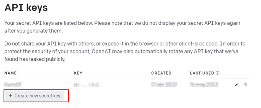 ステップ 2: 新しいシークレットキーの作成