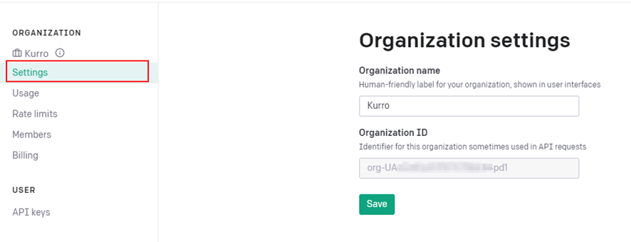組織の定義は必須ではありませんが、推奨されます。 API 呼び出しのヘッダーの一部となります。 また、組織のコードを後で使用できるようにコピーしておく必要もあります。