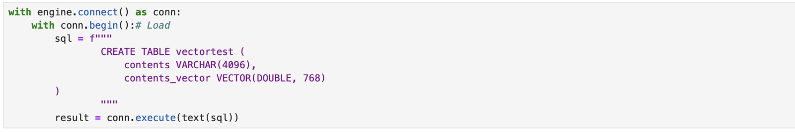 Property contents As%String(MAXLEN = 4096);Property contentsv As%Vector(DATATYPE = "DOUBLE", LEN = 768);ClassMethod load() [ Language = python ]